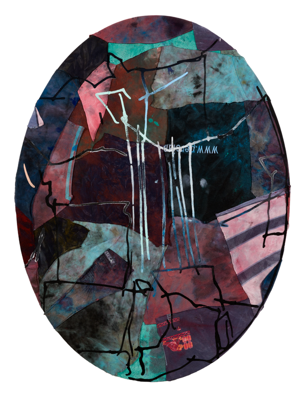 The thread is associated across cultures with feminine ingenuity, skill and nothing less than human destiny itself, in the personification of the Fates, three women known as the Moirai in the Greek tradition - Clotho the spinner, Lachesis the allotter and Atropos the inflexible, who cuts the thread thus completing the cycle of birth, life and death. The connection to the archetypal feminine, representing the unconscious or anima, is a profound influence on many artists whose holistic world view synthesizes personal narratives with ancient mythology, psychology and aspects of mending or renewal. Bea Bonafini’s evanescent flying and falling forms act as conduits between the earthly and otherworldly, Alice Kettle’s embroidered threads began as a healing process embracing the memory of her mother as maker. Tiffanie Delune’s multi-textural works embark on a spiritual journey, weaving together apparitions in dreams, childhood memories and magical symbols. Emma Talbot’s totemic female figures shimmer with iridescent metallics on silken sewn surfaces, evoking the duality of fragility and strength. Camilla Emson’s sensory practice, informed in part by her somatic therapeutic training, features ink leakages, bleach and looping clusters of thread on recycled fabric, whose shapeshifting forms awaken connections between mind and body. Carolina Mazzolari’s intimate work employs a herringbone technique with cotton, silk and wool thread on hand-dyed linen, revealing metaphorical inner landscapes, the materialization of emotional states of mind.