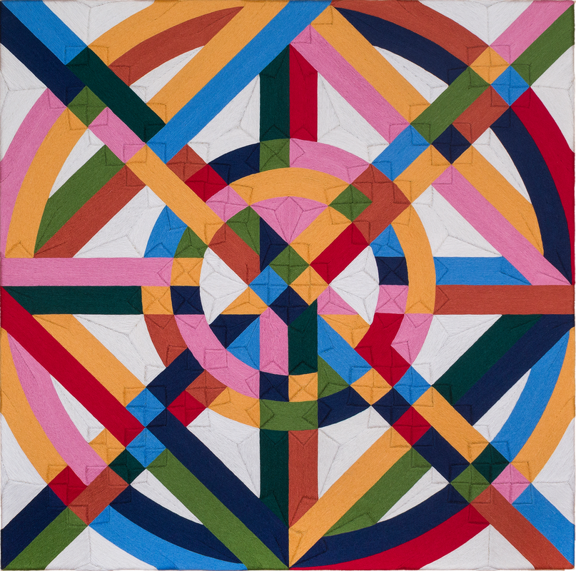 Eduardo Terrazas (b. 1936, Guadalajara, Mexico) is a Mexican artist and architect who is celebrated for his substantial contributions to the fields of art, architecture, design, museology, and urban planning in his native country. Trained as an architect, Terrazas has over his five-decade career combined modernist geometric abstraction with Mexican folk techniques in works whose aesthetic has come to define contemporary Mexican art. Terrazas first gained international acclaim for his logo and promotional materials for the 1968 Olympic Games in Mexico City, which he co-designed with Lance Wyman. The motif, based on a Huichol textile, was heralded for foregrounding Mexican traditional folk design and infusing it with a modern graphic sensibility. In the 1970s, he began a series of investigations into geometric forms that would serve as a through line within his artistic career. These investigations, combined with the appropriation of techniques from Mexican folk art, have resulted in a unique language that navigates both contemporary art and craft traditions. Terrazas has held positions as a lecturer in Architectural Design at Columbia University, New York from 1964 to 1965; the University of California, Berkeley from 1969 to 1970; and Cidoc, Cuernavaca in 1971. In 2013, he was invited to contribute his Tablas series, which employs a Huichol yarn-painting technique, to the Sharjah Biennial. The Museo del Palacio de Bellas Artes in Mexico City, Mexico honored the artist with a retrospective exhibition in 2023 which spanned his practice from painting to urban-scale projects. The following year, his work was featured in Foreigners Everywhere, the 60th edition of The International Art Exhibition, curated by Adriano Pedrosa and organised by La Biennale di Venezia.